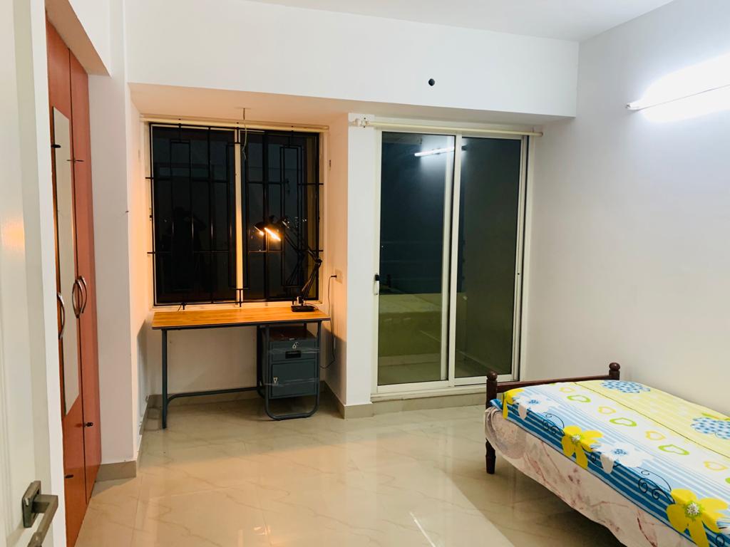 A well-maintained 2 BHK fully furnished flat (without TV and AC) is available for rent, ideal for both families and bachelors seeking a comfortable and convenient living space. The flat features two spacious bedrooms furnished with essential items such as cots and wardrobes, providing a ready-to-use setup. The living area is neatly designed with comfortable seating arrangements, creating a pleasant ambiance for relaxation.