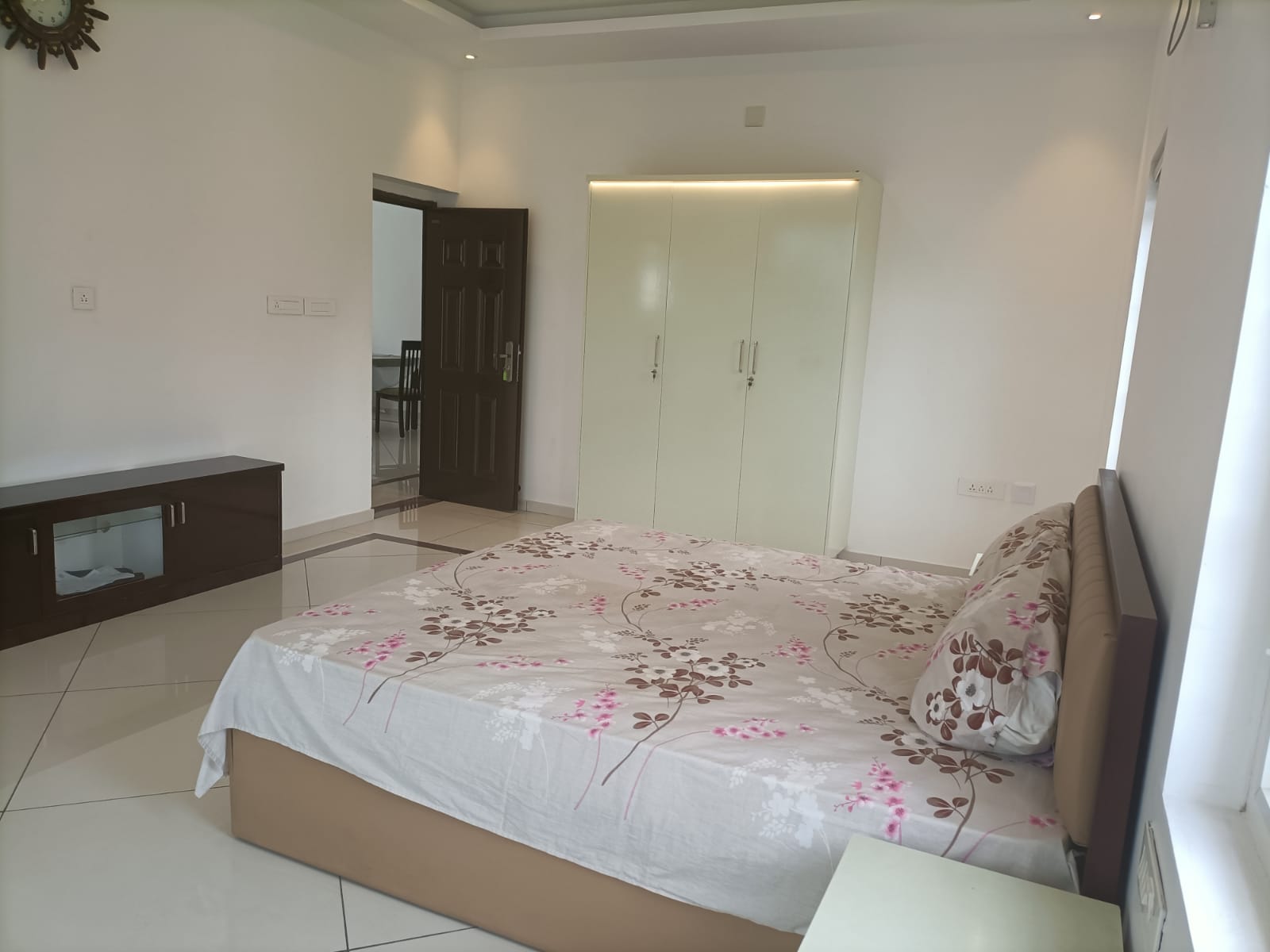 This 4 BHK luxury house, located on the upper floor in Kakkanad, offers a premium living experience just 1 km from InfoPark, making it ideal for both families and executive bachelors. The property is situated in a safe and secure neighborhood, ensuring peace of mind for all residents. It features spacious rooms, modern interiors, and ample car parking space. With essential amenities like bus stops, supermarkets, and a petrol station within walking distance, daily conveniences are just a short stroll away. Whether you're a family or a professional, this well-connected and upscale property offers comfort, style, and practicality.